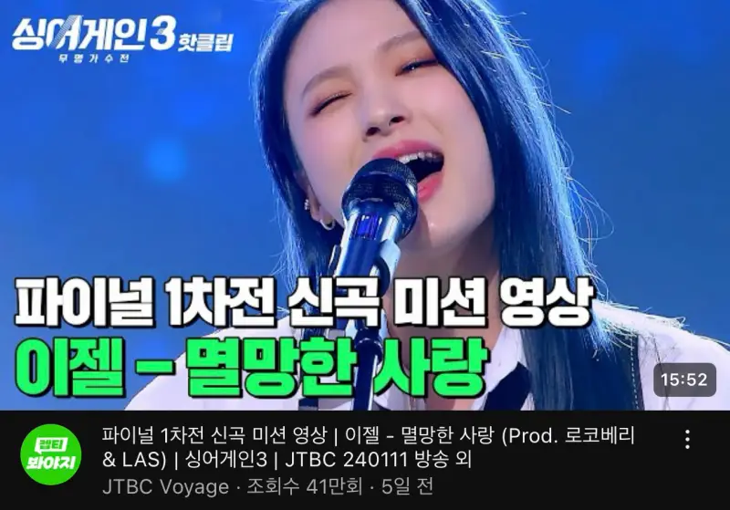 싱어게인 3 파이널 라운드는 1차전과 2차전으로 두 번에 걸쳐 치르게 됩니다. 1차전은 작곡가들이 만든 신곡을 부르는 미션이었고 2차전은 자유곡으로 치르게 됩니다.